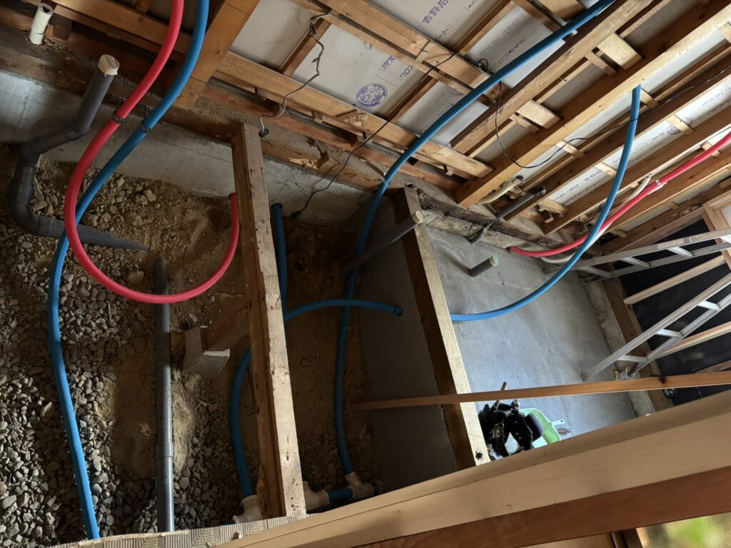 浴室1.5坪、脱衣室1.5坪の改修で配管中です