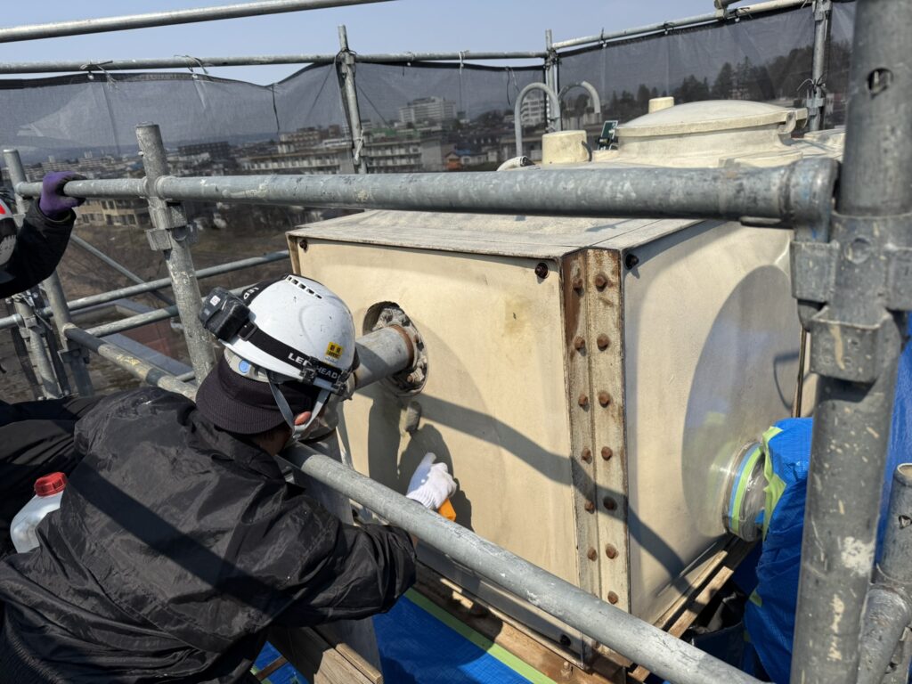 福島県会津若松市の公務員宿舎にて高置水槽の補修工事をしてきました。